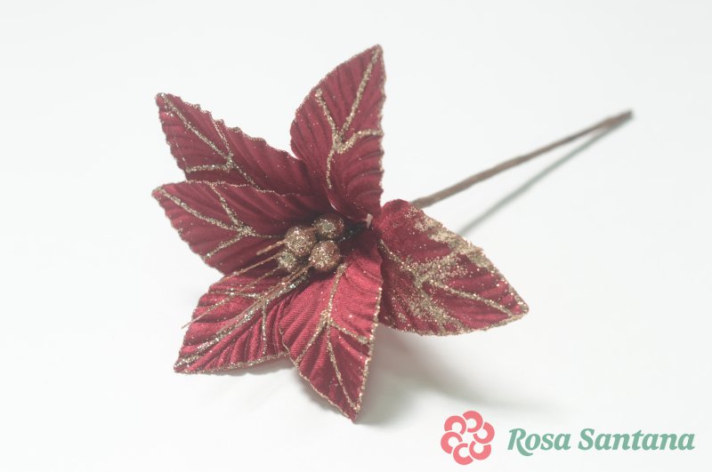Голова пуансеттии с ножкой (d-19 cm) для ветки, венка
