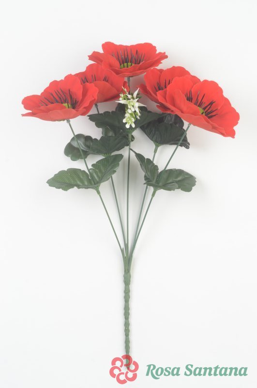 Ветка в букете мак бархатный с зеленым сердцем 5 голов (1010237) красный
